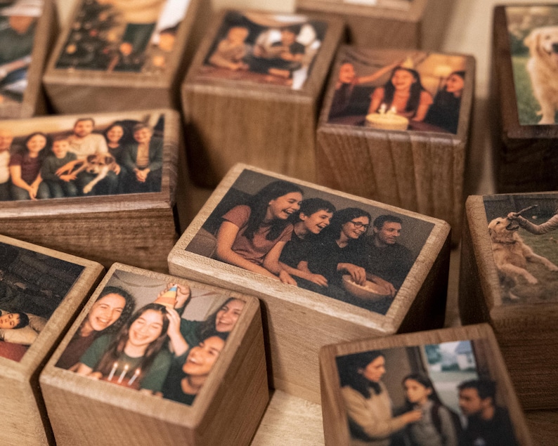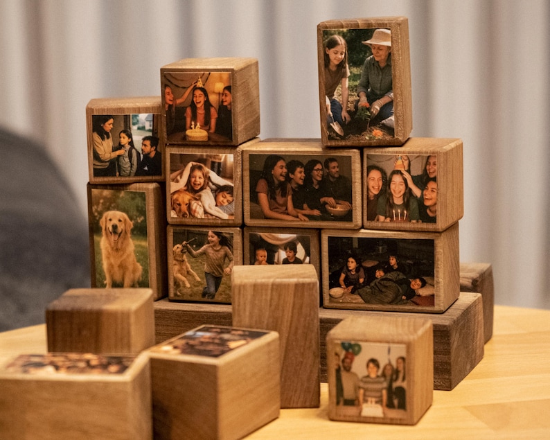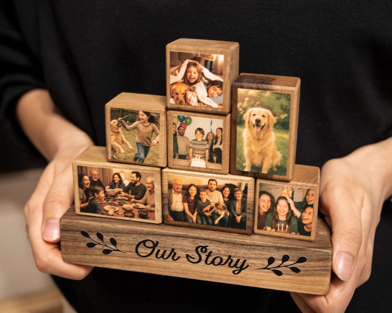 Custom Wooden Photo Blocks Collage – Stackable Wood Photo Block Set, Family & Personalized Picture Gift
